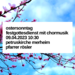 Am Ostersonntag laden wir um 10.30 Uhr ein zum Ostergottesdienst mit Chormusik in die Petruskirche Merheim. Jesus ist auferstanden. Diese Freude feiern wir in vielen Farben und Tönen. Der Gottesdienst wird gestaltet von unserem Kirchenchor und zahlreichen Musiker:innen und Solist:innen (Leitung: Kirchenmusikerin Susanne Rohland-Stahlke).