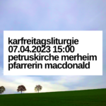 Am Karfreitag zur Sterbestunde Jesu am Nachmittag laden wir ein zum Gottesdienst um 15 Uhr in die Petruskirche Merheim. Wir schauen auf die letzten Ereignisse im Leben Jesu und hören seine Leidensgeschichte. Wir schauen auf das Kreuz. Lassen alles Dunkel dieses Tages auf uns wirken. Und wir legen rote Rosen auf den Altar. Und dann: Stille, Warten, Aushalten, Erwarten.